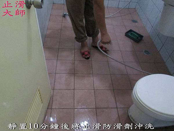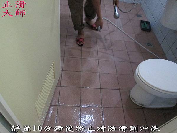 靜置10分鐘後將止滑防滑劑沖洗-佶川科技止滑大師,Pro Anti-Slip Treatment,止滑液防滑液創業加盟連鎖,止滑劑防滑劑止滑防滑,專業施工,地坪磁磚浴室防滑止滑, -浴室防滑,浴室止滑,磁磚防滑,磁磚止滑,止滑劑,防滑劑磨石子,石材防滑,石材止滑,地面止滑公司,地面防滑公司,防滑塗料,止滑塗料,防滑藥劑,止滑藥劑,防滑商品,止滑商品,水磨石防滑,花崗岩防滑,水泥防滑,抿石防滑